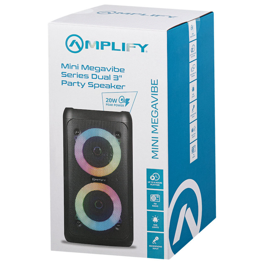 Amplify Mini Megavibe Series Dual 3″ Party Speaker – Black