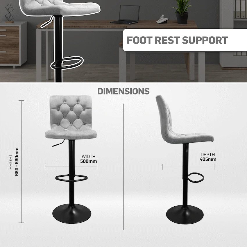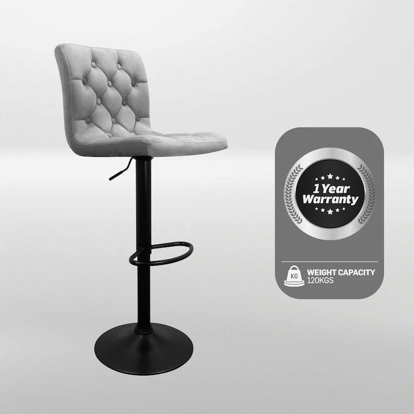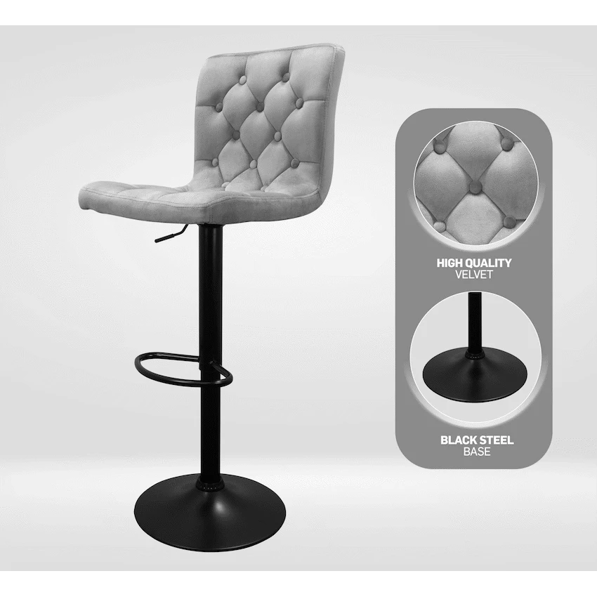 Everfurn Bayer Barstool, Black Base, Velvet Fabric