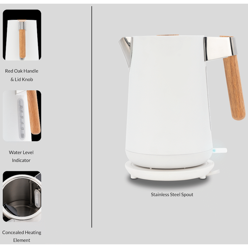 Bring warmth and elegance to your kitchen with the Boden Stark Anson Collection Kettle. Crafted with a genuine red oak handle and lid knob, and powered by a fast-boil 2000W heating element, it blends timeless design with modern functionality.1.7L Capacity – Ideal for family use or entertaining2000W Power – Fast and efficient boilingStrix Controller – Advanced safety and temperature precisionRemovable Filter – For cleaner water and easy maintenanceRed Oak Handle & Lid Knob – Authentic wood for a refined finish