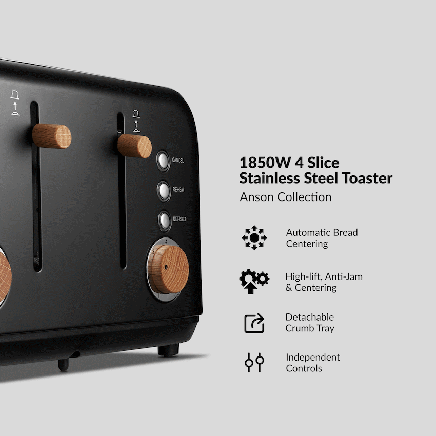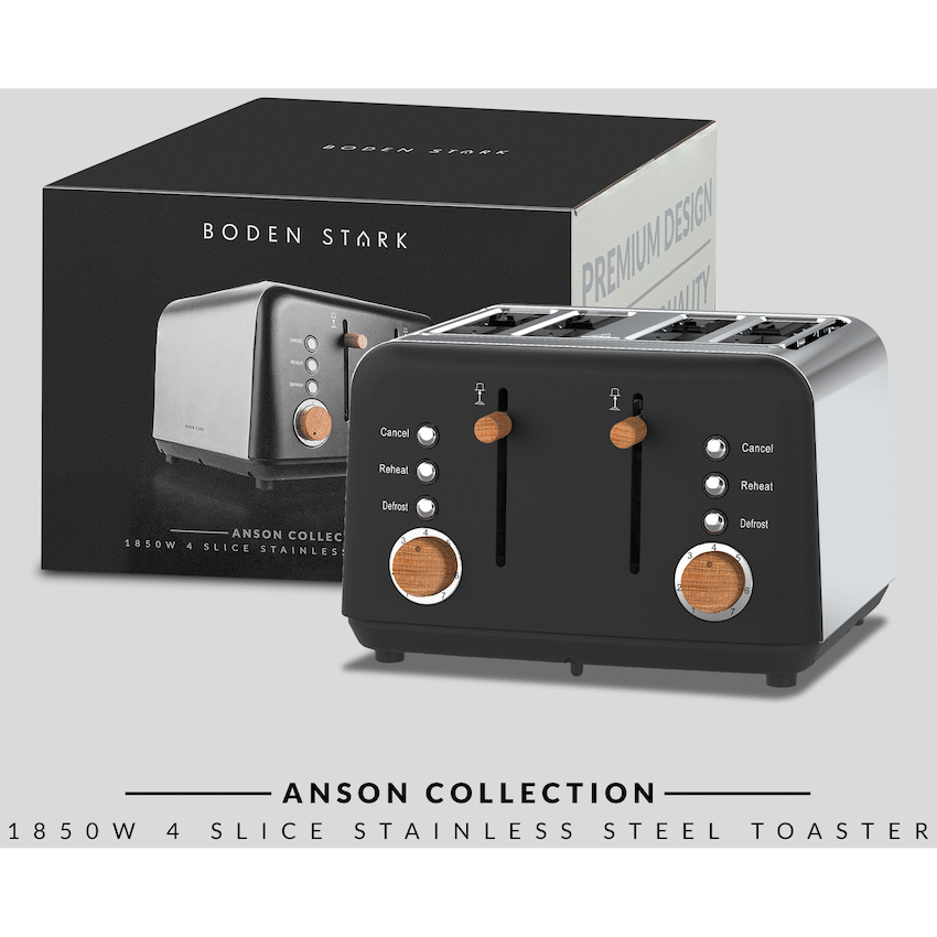 Boden Stark Anson Collection 4-Slice Stainless Steel Toaster – Black