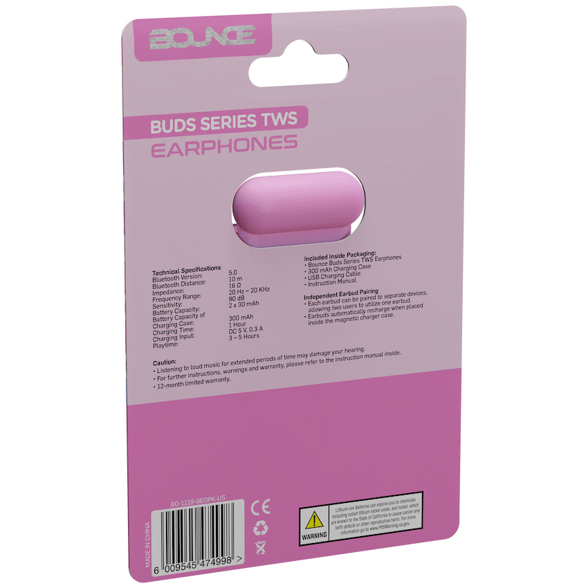 Bounce Buds Series True Wireless Earphones – Geo Pink