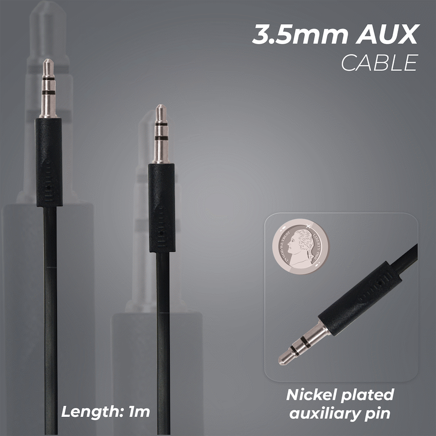 Enjoy clear, reliable audio with the Bounce Cord Series AUX Cable in sleek black. This 1-meter analogue audio cable is perfect for connecting smartphones, tablets, car stereos, or speakers-offering seamless sound transmission in a compact, durable design for everyday listening.