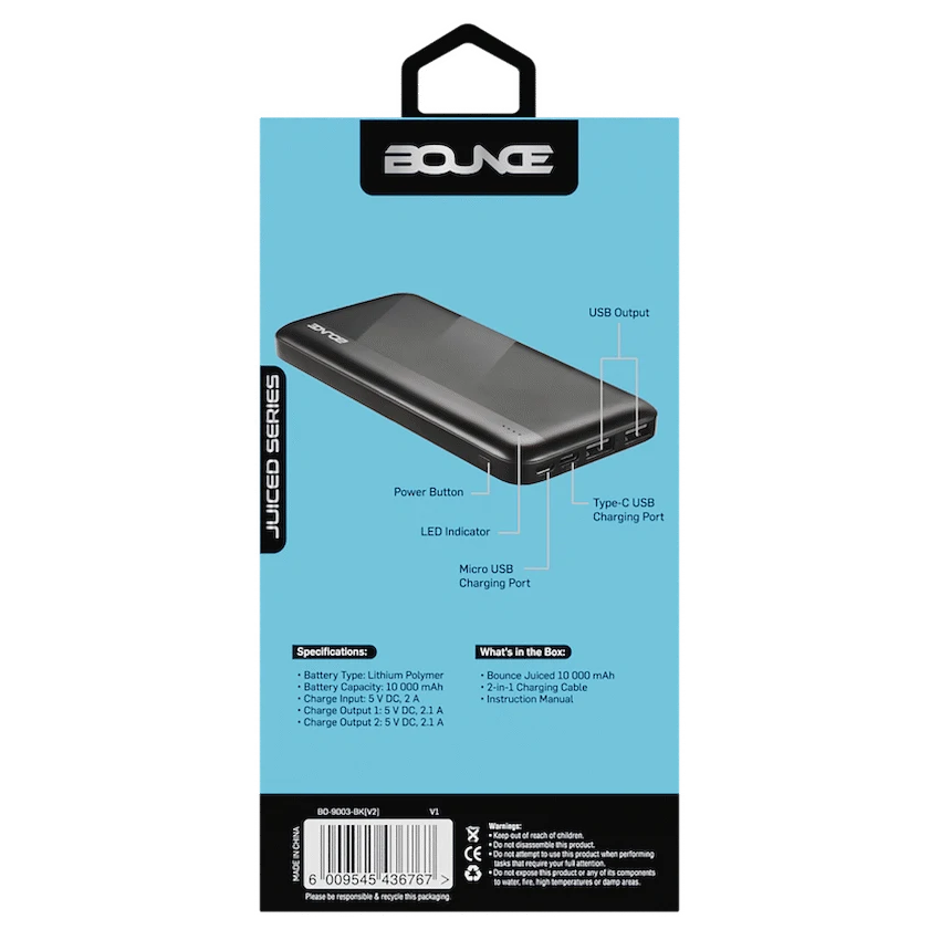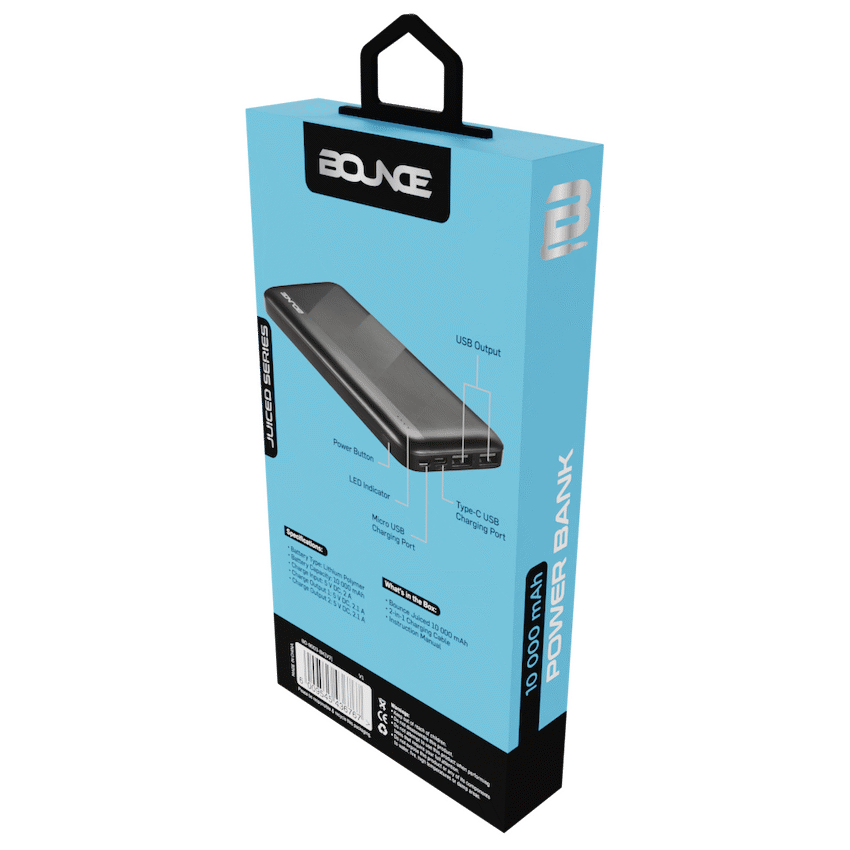 Bounce Juiced Series 10,000 mAh Powerbank – Black