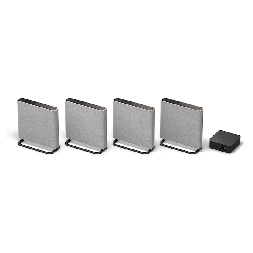Sony BRAVIA Theatre Quad : Redefining Surround Sound for an Immersive Home Theater ExperienceStep up to the next level of cinematic audio with the Sony BRAVIA Theatre Quad, a breakthrough in surround sound design. Combining both physical and virtual speakers, this innovative system creates a broad sound field that immerses you in every scene, letting you experience movies and music as never before.Seamless Design with Flexible InstallationDesigned to enhance your living space, the BRAVIA Theatre Quad wireless speakers blend effortlessly into any room. They can be wall-mounted or placed on stands, offering the ideal mix of elegance and convenience without compromising on sound quality.Perfect Surround Sound for Every SeatNo matter where you sit, the BRAVIA Theatre Quad ensures a powerful surround sound experience thanks to Sony’s Sound Field Optimization technology. This advanced system adjusts audio settings based on room acoustics, ensuring everyone in the room enjoys an equally immersive experience.High-Performance Acoustic DesignWith Sony’s commitment to exceptional acoustic engineering, every component of the BRAVIA Theatre Quad is crafted to deliver premium sound quality. The four-channel, 16-speaker system, powered by Sony’s S-Master HX digital amplifier, provides 504W of robust audio output for rich, clear sound.