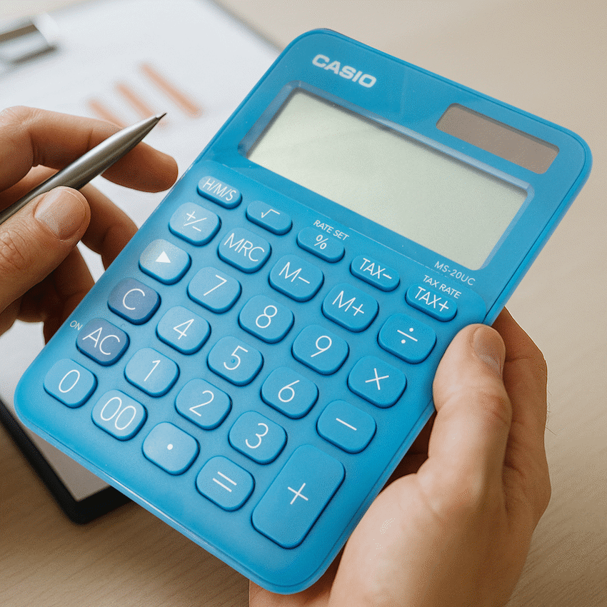 The Casio MS-20UC Desktop Calculator is a versatile and practical tool designed for everyday office, business, and home use. With its 12-digit extra-large display, calculations are clear and easy to read, reducing errors during work. It comes equipped with essential functions including tax calculation, time calculation, and profit margin percentage, making it ideal for financial and accounting tasks. The function command signs provide clear input guidance, while the key rollover function ensures accurate entry even when keys are pressed quickly. Powered by a two-way system (solar and battery), it guarantees reliable performance in all lighting conditions. Compact yet efficient, this calculator measures 105(W) x 149.5(D) x 22.8(H)mm, making it the perfect size for any desk.