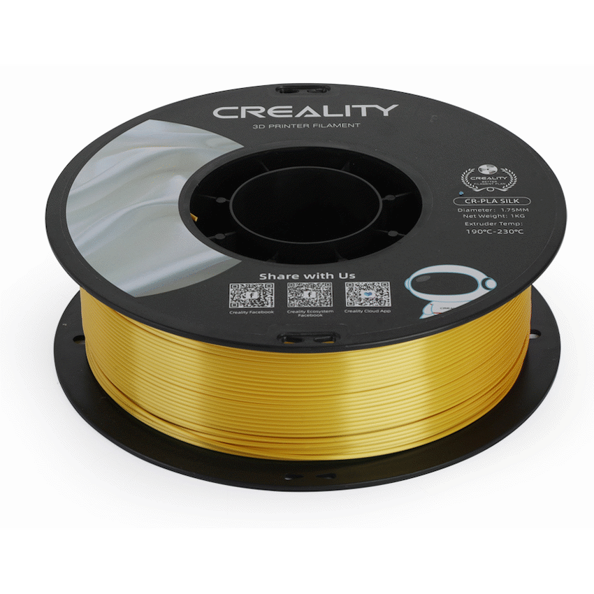 Creality Silk Filament is a premium 3D printing material that brings a touch of elegance and uniqueness to your creations. Crafted with meticulous precision and utmost attention to detail, this filament boasts a captivating silky sheen that imparts a lustrous finish to your printed objects. The mesmerizing iridescence of the Silk Filament adds a luxurious touch to your prints, making them stand out among the crowd.Engineered with high-quality raw materials, the Creality Silk Filament ensures excellent printability and smooth extrusion, resulting in flawlessly detailed and aesthetically pleasing prints. Its consistent diameter and low tolerance provide a seamless printing experience, reducing the risk of clogs and jams in your 3D printer.Furthermore, this filament is designed to be compatible with a wide range of 3D printers, ensuring that you can achieve superior results regardless of the brand or model you own. The Creality Silk Filament supports printing at various temperatures, offering versatility and flexibility in realizing your creative visions.Whether you’re printing intricate artistic pieces, functional objects, or decorative items, the Creality Silk Filament elevates your 3D printing endeavors to new heights. Its striking visual appeal, combined with reliable performance, makes it an ideal choice for artists, designers, hobbyists, and professionals alike.Unleash your imagination and indulge in the captivating beauty of Creality Silk Filament, transforming your concepts into tangible masterpieces that exude elegance and charm. Elevate your 3D printing projects with this remarkable filament and witness how it weaves a touch of opulence into your creative journey. Experience the magic of silk-like prints that radiate a distinct allure, setting your creations apart in a world of infinite possibilities.What’s in the box1 x User Manual1 x Creality Silk Filament