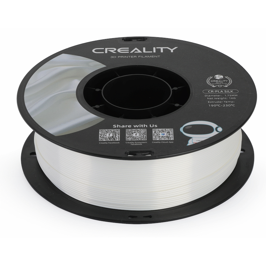 Creality Silk Filament is a premium 3D printing material that brings a touch of elegance and uniqueness to your creations. Crafted with meticulous precision and utmost attention to detail, this filament boasts a captivating silky sheen that imparts a lustrous finish to your printed objects. The mesmerizing iridescence of the Silk Filament adds a luxurious touch to your prints, making them stand out among the crowd.Engineered with high-quality raw materials, the Creality Silk Filament ensures excellent printability and smooth extrusion, resulting in flawlessly detailed and aesthetically pleasing prints. Its consistent diameter and low tolerance provide a seamless printing experience, reducing the risk of clogs and jams in your 3D printer.Furthermore, this filament is designed to be compatible with a wide range of 3D printers, ensuring that you can achieve superior results regardless of the brand or model you own. The Creality Silk Filament supports printing at various temperatures, offering versatility and flexibility in realizing your creative visions.Whether you’re printing intricate artistic pieces, functional objects, or decorative items, the Creality Silk Filament elevates your 3D printing endeavors to new heights. Its striking visual appeal, combined with reliable performance, makes it an ideal choice for artists, designers, hobbyists, and professionals alike.Unleash your imagination and indulge in the captivating beauty of Creality Silk Filament, transforming your concepts into tangible masterpieces that exude elegance and charm. Elevate your 3D printing projects with this remarkable filament and witness how it weaves a touch of opulence into your creative journey. Experience the magic of silk-like prints that radiate a distinct allure, setting your creations apart in a world of infinite possibilities.What’s in the box1 x User Manual1 x Creality Silk Filament