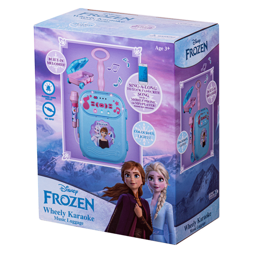 *Mic Input *11 Preloaded Songs*Preloaded Accompany Melodies*Mobile Phone / MP3 Player Holder *Lighting*MP3 Jack*Includes 1 x Wired Microphone*Voice Changing Function*Recording Function*Draw-Bar and Wheels*Accessible Storage Compartment