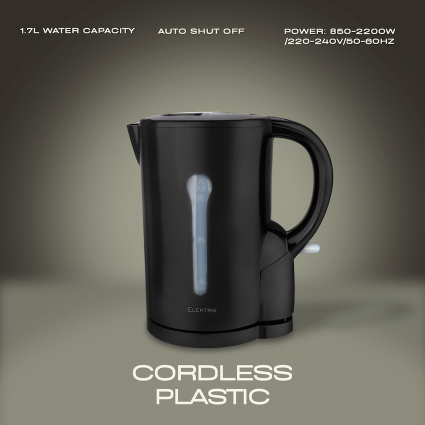 Elektra 1.7l Plastic Cordless Kettle – Black