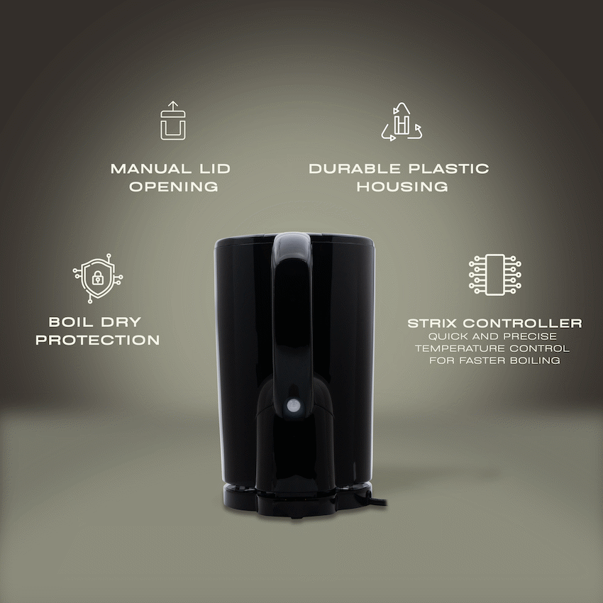 Boil water quickly and effortlessly with the ELEKTRA Plastic Cordless Kettle, designed for everyday use and safety.1850-2200W Power: Rapid boiling performance when you need it most.1.7L Capacity: Perfect size for home or office.Plastic Housing: Lightweight and durable for easy handling.Strix Controller: Trusted temperature control for safe, reliable boiling.Manual Opening Lid: Simple and practical for easy filling.Enjoy hot water on demand-efficiently and safely.