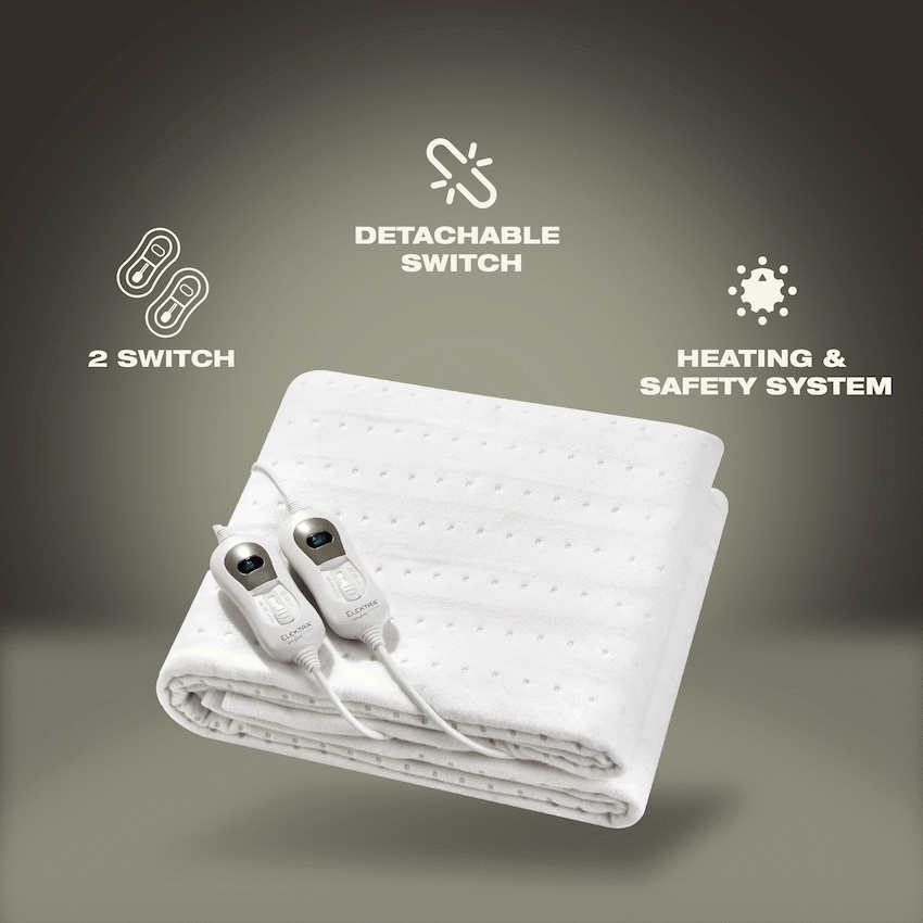 Drift into warmth with the perfect blend of comfort, safety, and efficiency. The ELEKTRA Comfort Electric Blanket features a fitted design, detachable switch, and an advanced heating & safety system-all while using minimal electricity.Warmth that wraps around you. Safety that lets you sleep easy.Stay cozy. Sleep smarter. Choose ELEKTRA.