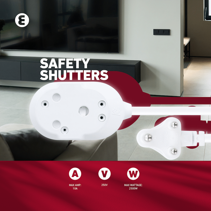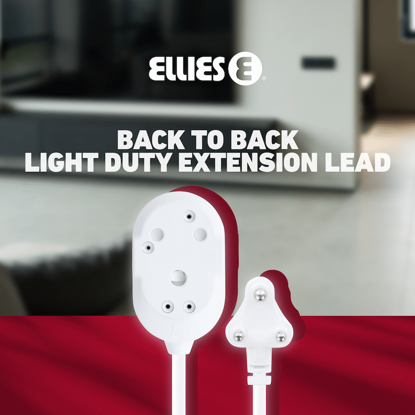 Keep your essential electronics powered with the Ellies Back-to-Back Light Duty Extension Lead – 3m. Designed for daily convenience and safety, this light duty extension lead is perfect for low-power devices like lamps, chargers, routers, and small office accessories.With 2 x 16A 3-pin sockets and a 3-metre PVC cable (3×1.0mm2), it offers just the right reach for nearby plug points without creating cable clutter. The back-to-back socket layout keeps plugs neatly separated, ideal for desks, home setups, or compact workspaces.Built-in safety shutters help protect against accidental electrical contact, making it a smart choice for households with children or shared environments. Backed by the trusted quality of Ellies extension leads, it’s a dependable everyday power solution.