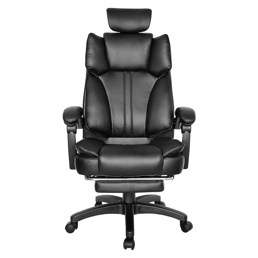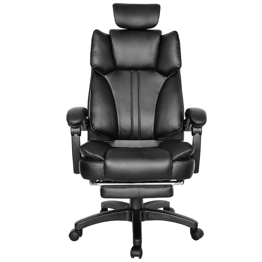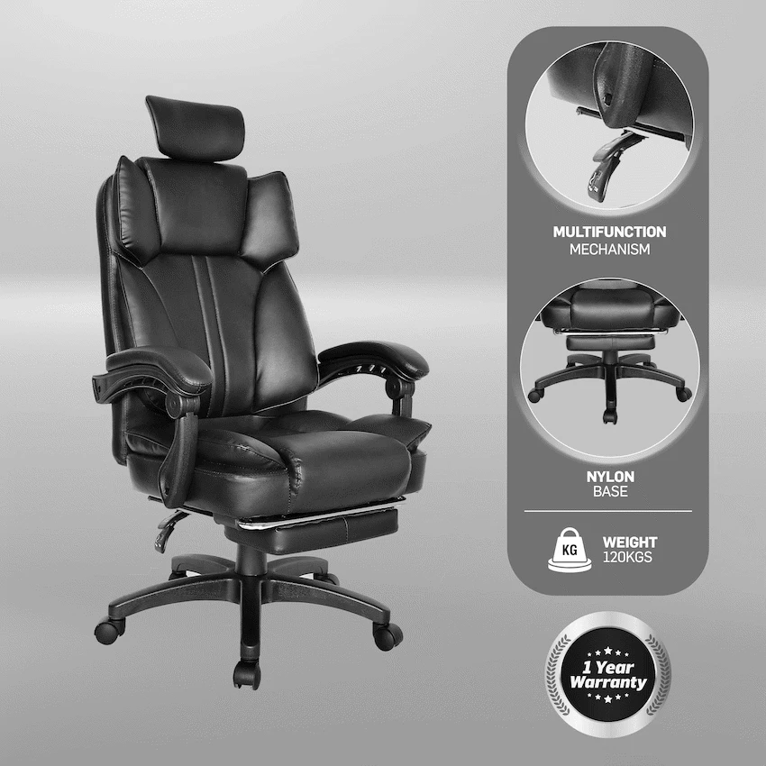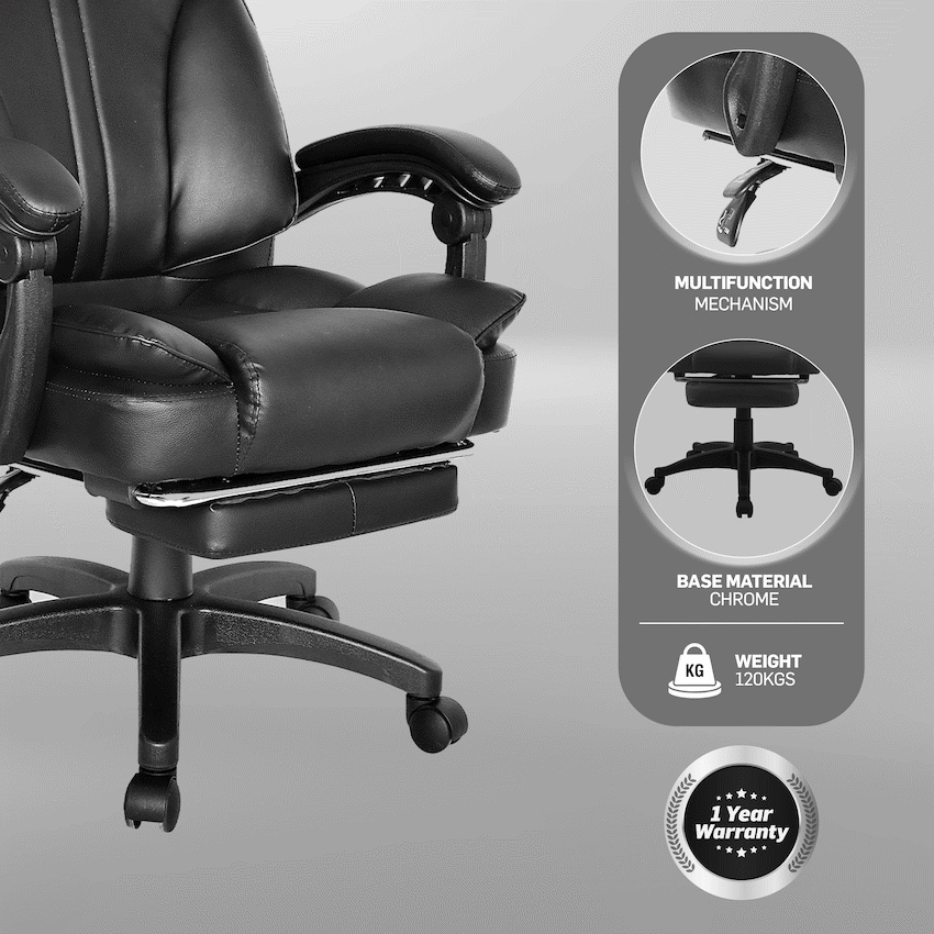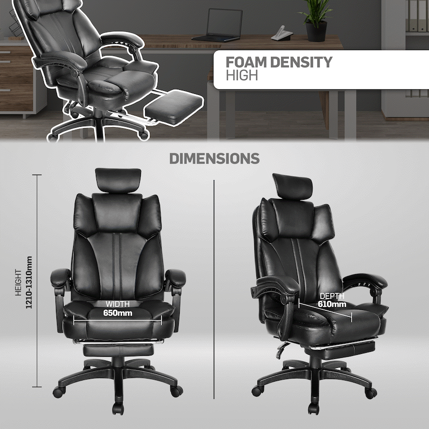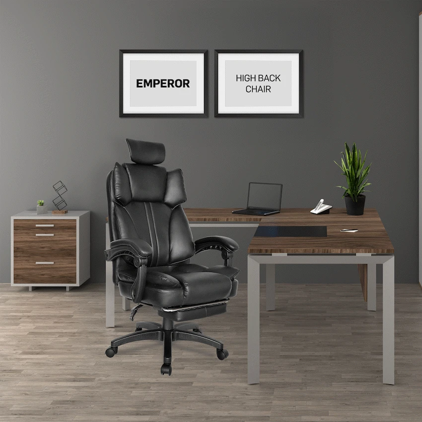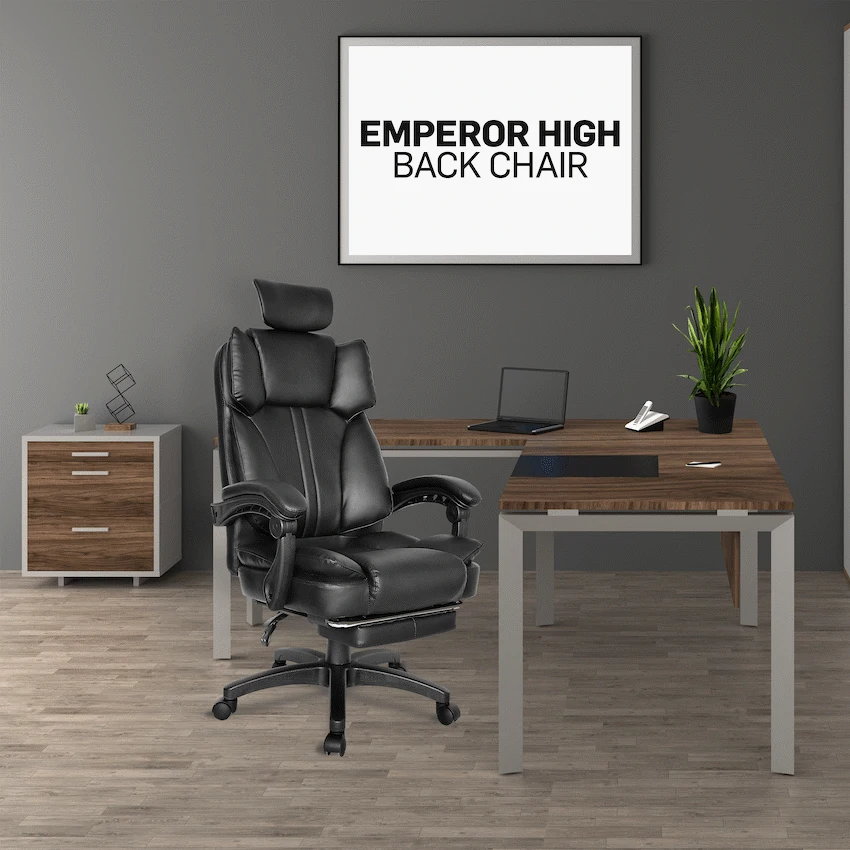Everfurn Emperor High back Chair – Black, PU, Extendable Leg Rest