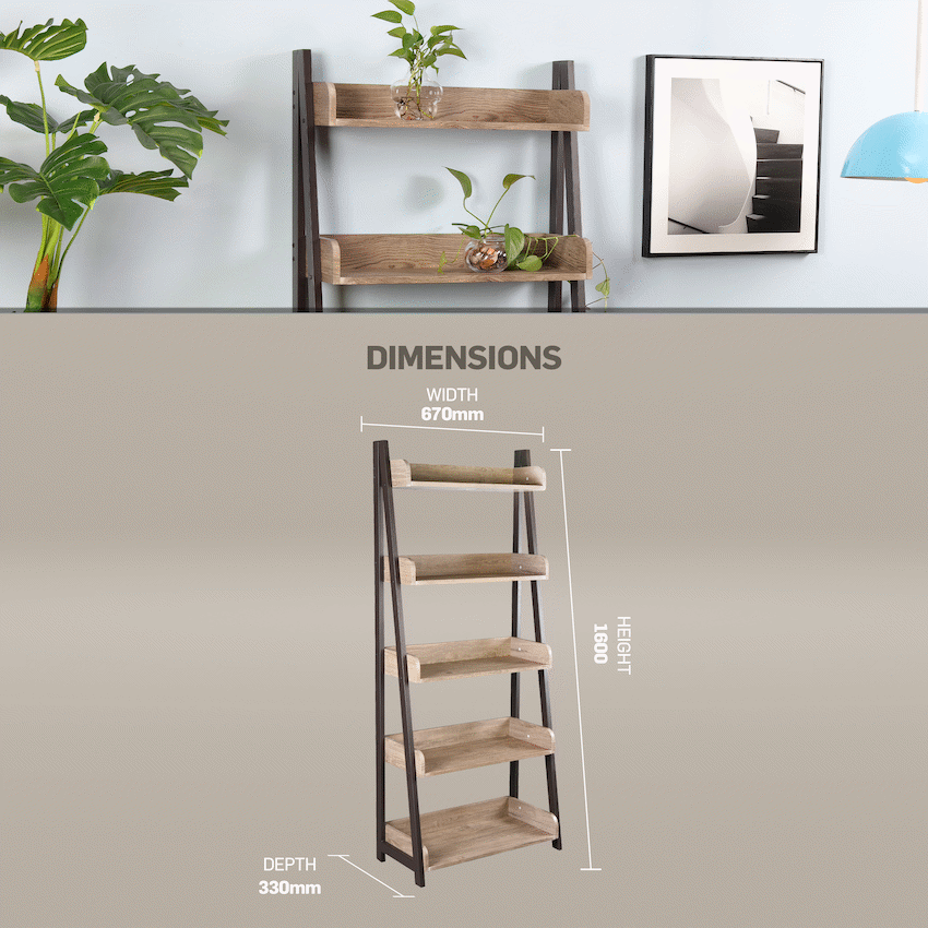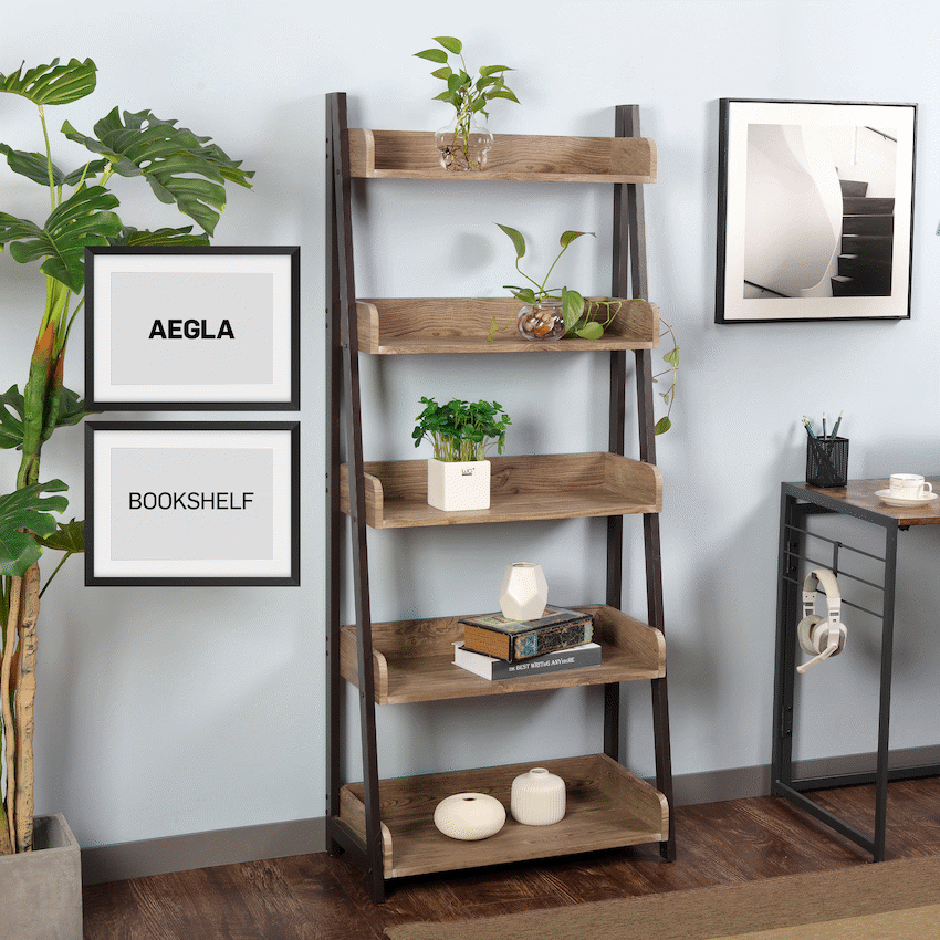 Everfurn Aegla 5-Tier Bookshelf, High Pressure Laminate, With Powder Coated Frame and PVC-edging.