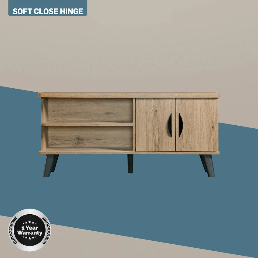 Everfurn Altitude Tall TV Stand, Paper Lamination, Soft Close Hinges Depth: 400 mmWidth: 1200 mmHeight: 550 mmPU LaminationSoft Close HingesMelamine1 Year warranty