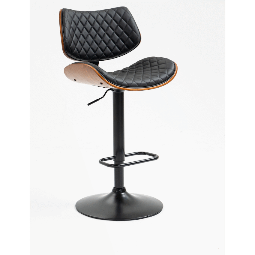 Everfurn Ava Barstool, PU, Bent Wood, Powder Coated Steel Base, Height Adjustable