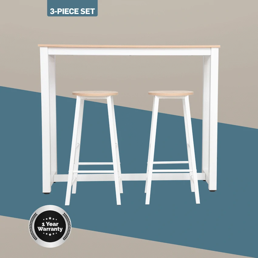 Everfurn Chenin 3-Piece Bar Table & Stool Set, With Powder Coated Frame, Melamine Laminated Top and PVC-edging.