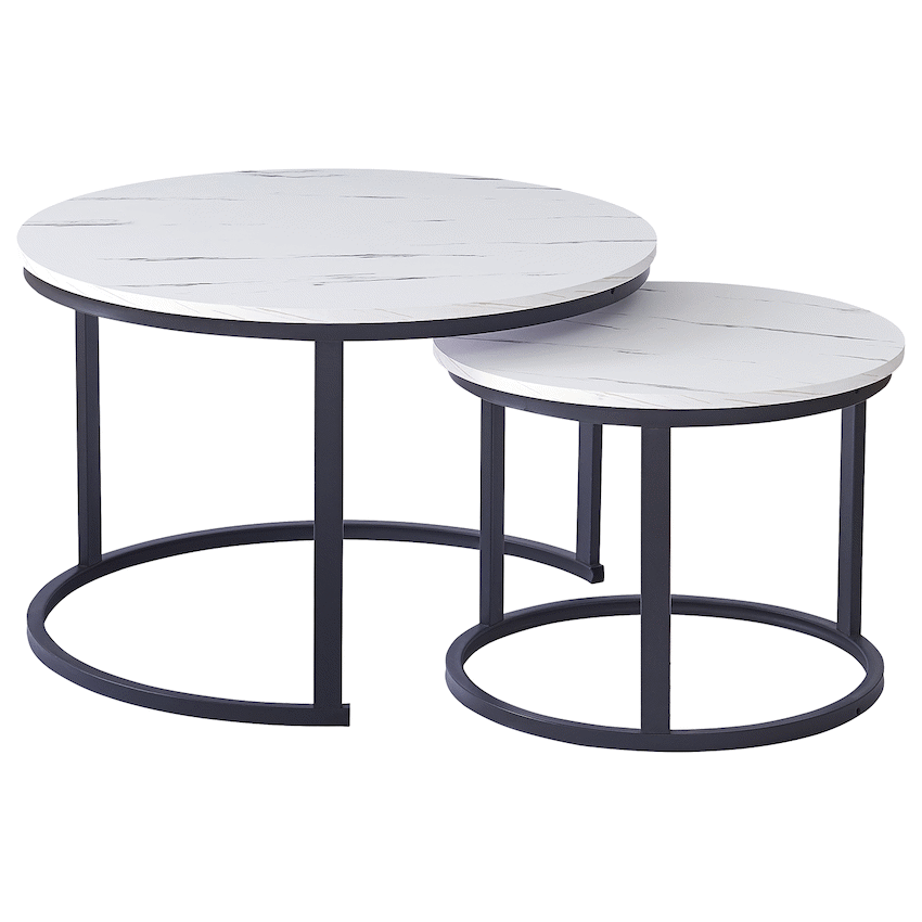 Everfurn Indus Nesting Coffee Table White 2 Piece, Powder Coated Steel Frame, High Pressure Laminate