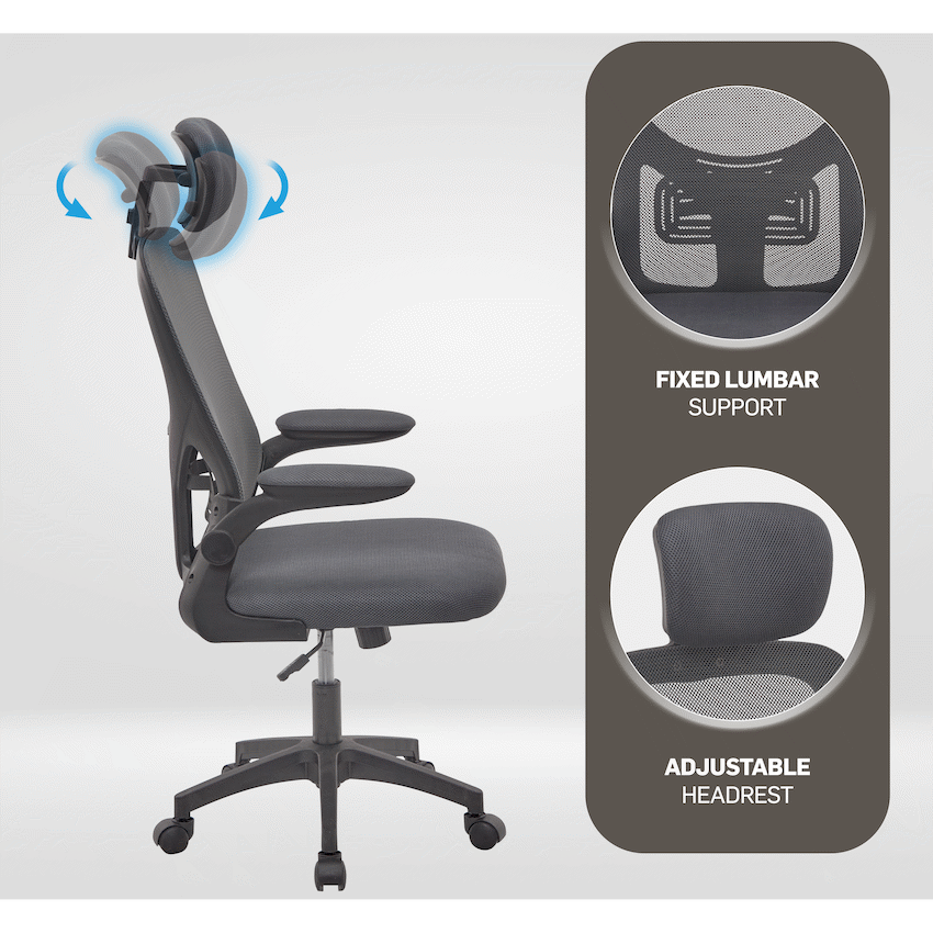 Everfurn Kira High Back Office Chair with Headrest – Grey with Black Frame