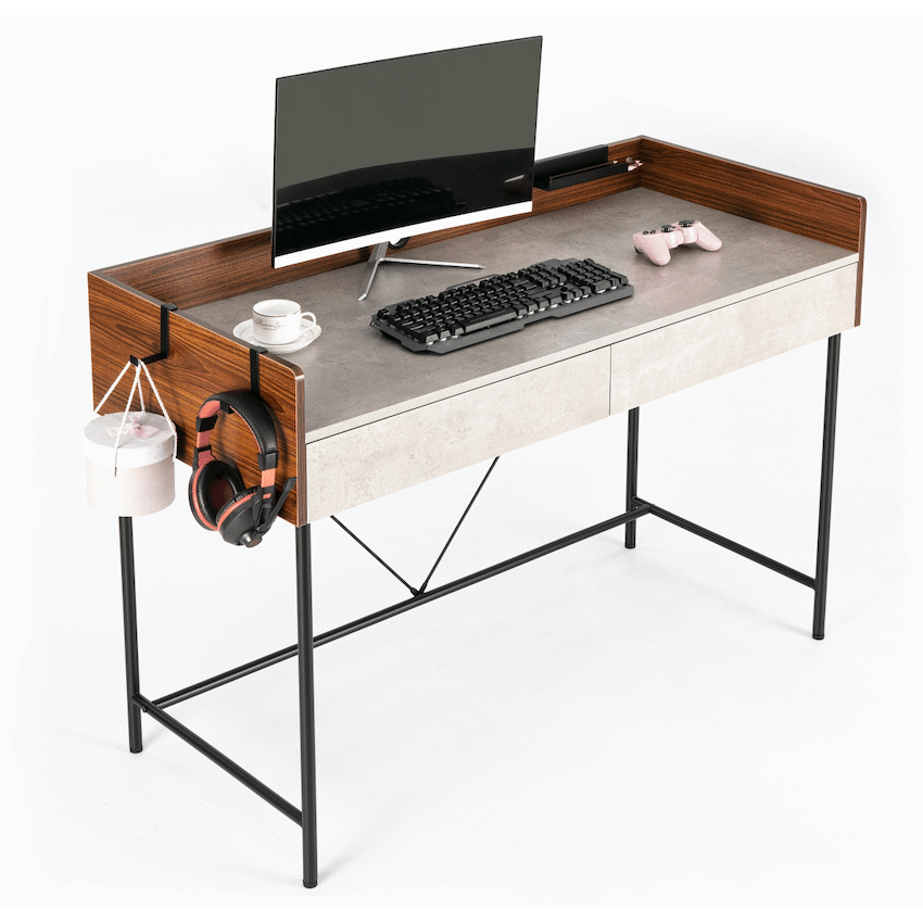 Everfurn Nick Office Desk, x 2 Drawers, Headphone Hook, Pen Holder, Adjustable Feet