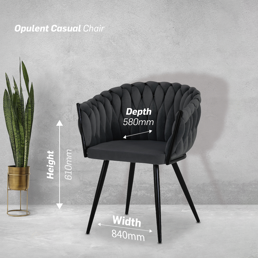 Introducing the Giselle Series 2-Pack Large Velvet Casual Chair – a luxurious and comfortable seating solution that seamlessly blends style with functionality. Immerse yourself in the features of these chairs, meticulously crafted to provide a touch of elegance to your living space while ensuring a cozy and supportive seating experience.With a depth of 580mm, a height of 610mm, and a width of 840mm, the Giselle Series Chairs strike an ideal balance between spaciousness and a sleek design. Their generous dimensions offer a comfortable and inviting seating experience, making them a perfect addition to any lounge or relaxation area.The chairs boast high foam density of 30kgs/m3, ensuring a plush and supportive seating experience. This feature makes them ideal for extended periods of relaxation, providing both comfort and durability.Constructed with a steel base, these chairs offer stability and longevity. The steel base not only provides a robust foundation but also adds a touch of modernity to the design, enhancing the overall aesthetic of your living space.With a rub count of 15,000, the velvet upholstery of the Giselle Series Chairs is not only stylish but also durable, capable of withstanding regular use while maintaining its luxurious appearance.Designed to accommodate up to 120kg, these casual chairs provide robust and reliable support for various users. This feature ensures a sturdy seating solution suitable for a diverse range of individuals.Transform your living space with the Giselle Series 2-Pack Large Velvet Casual Chair – a perfect combination of elegance, comfort, and durability. Redefine your seating experience with these modern chairs that effortlessly blend aesthetics and functionality, creating a luxurious ambiance in your home.What’s in the boxTrue