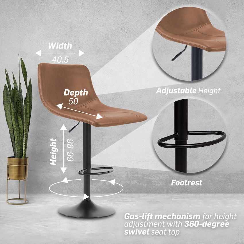 Everfurn Pinda Swivel Barstool 2 Pack, Height Adjustable, Steel Base