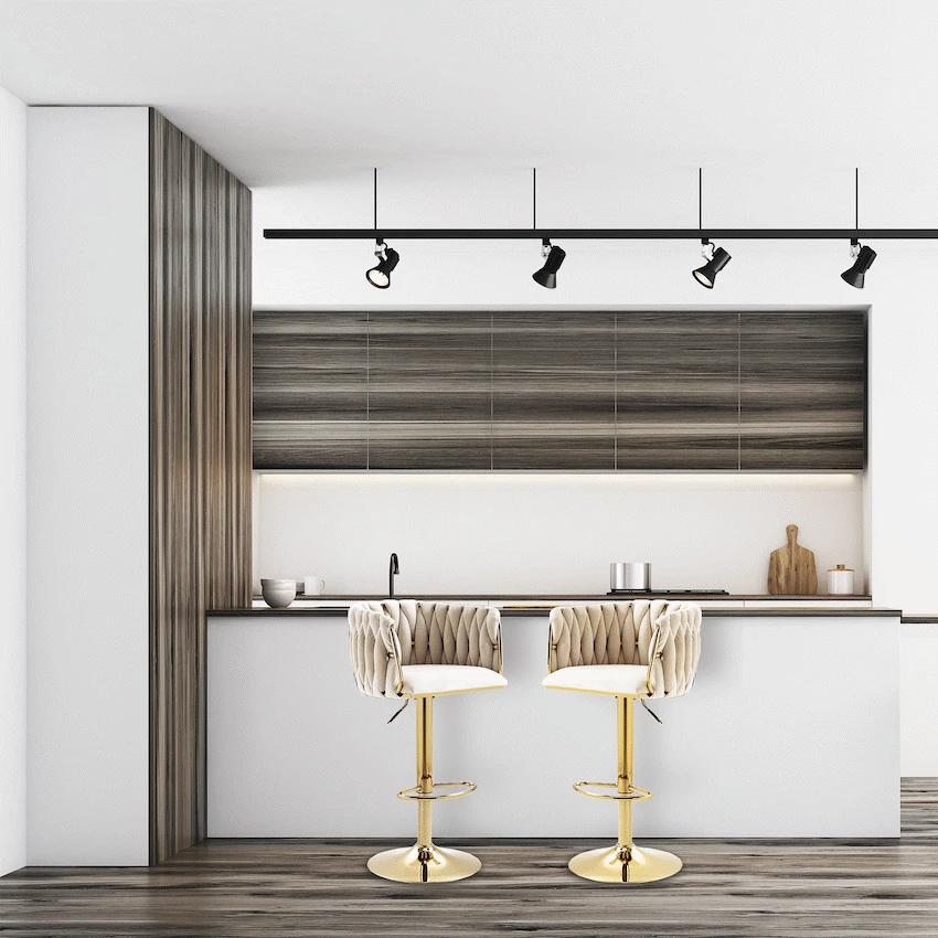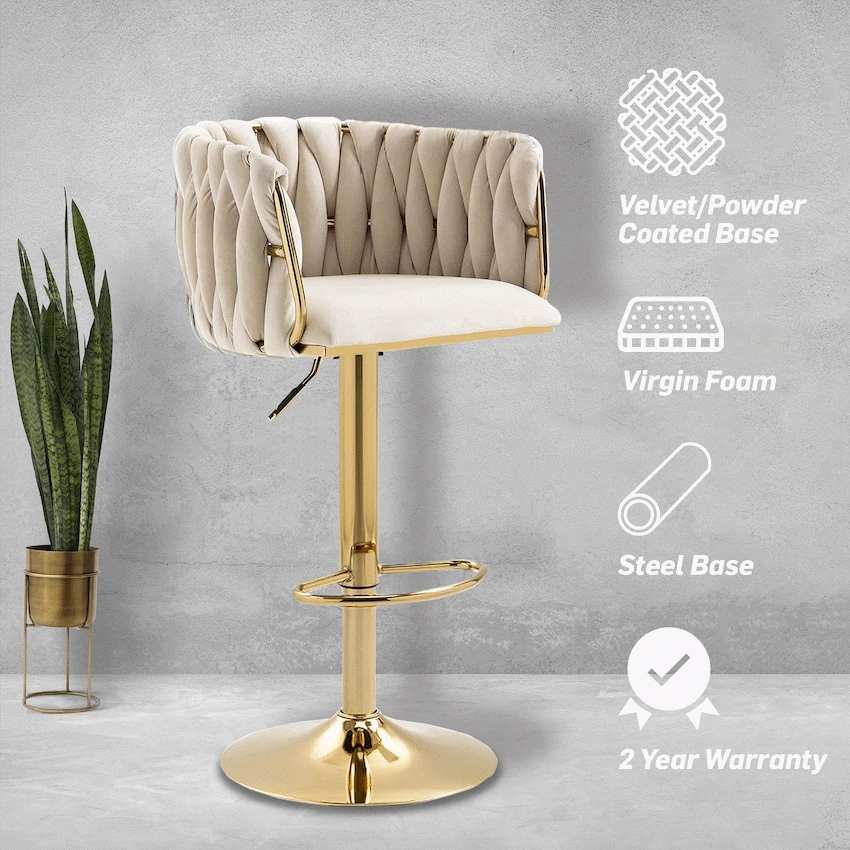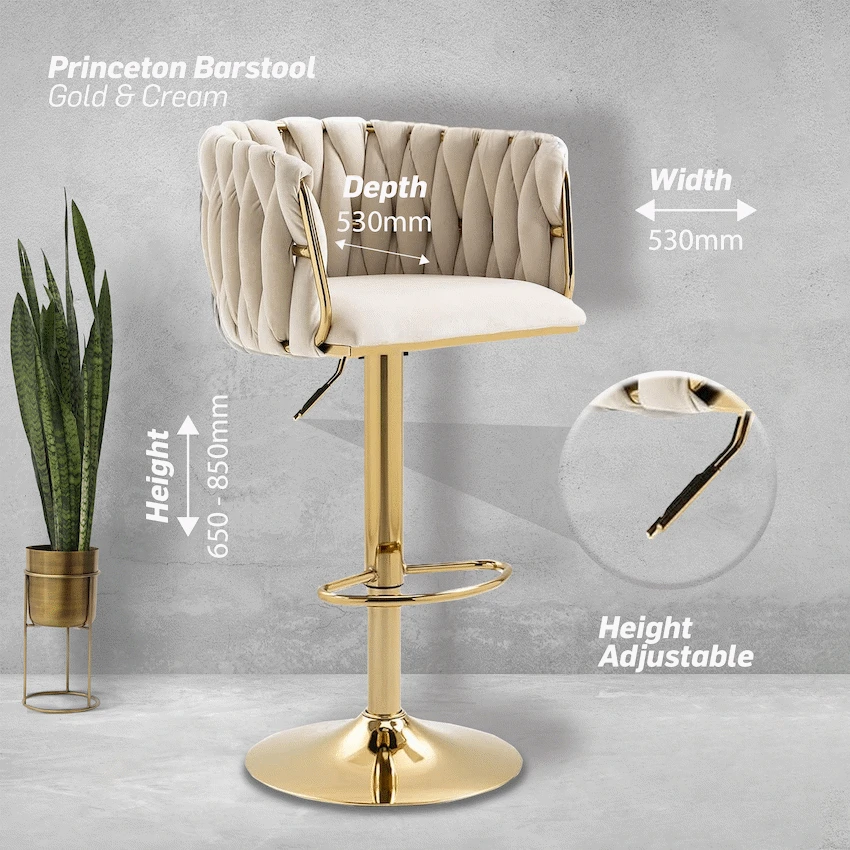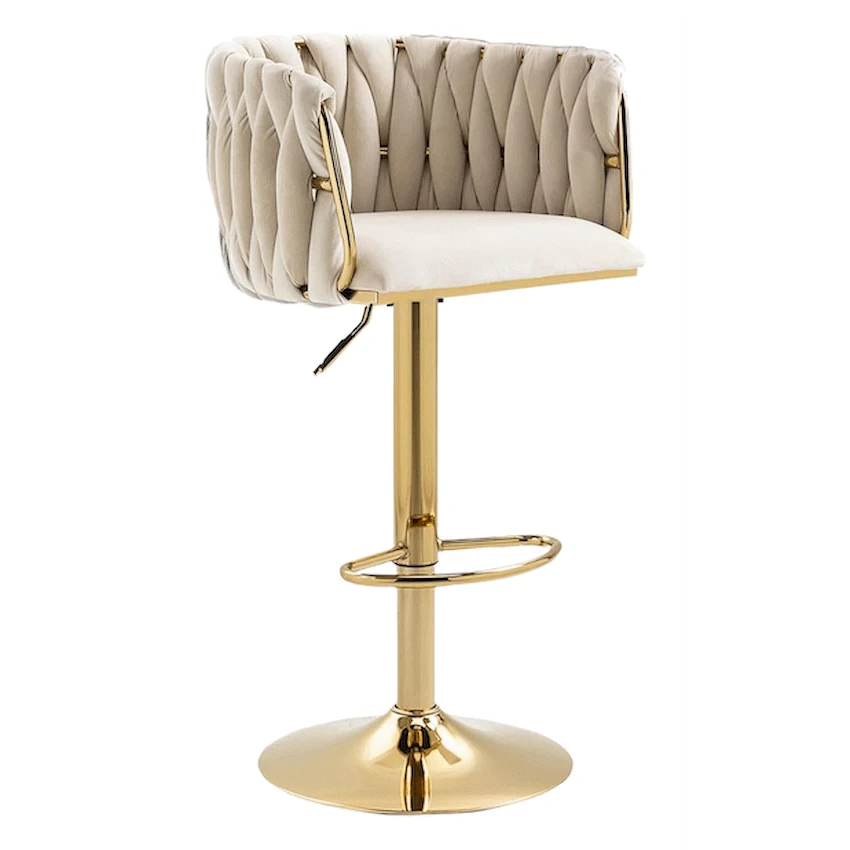 Everfurn Princeton Barstool – Gold & Cream, Height Adjustable