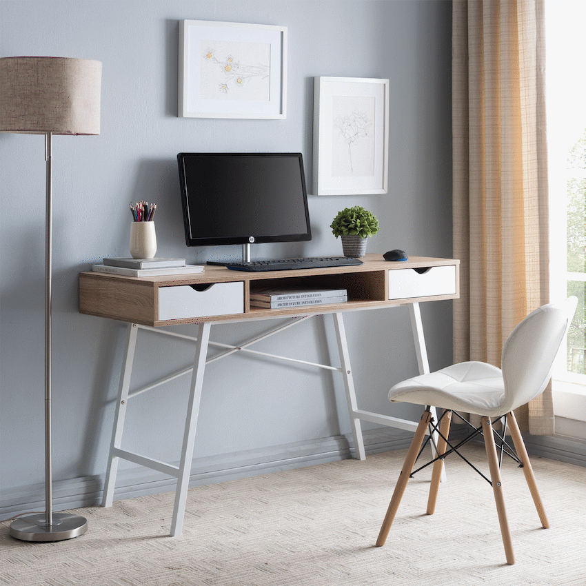 Everfurn Rain Work Desk – Study Desk with Two Drawers, Steel Frame, Adjustable Feet