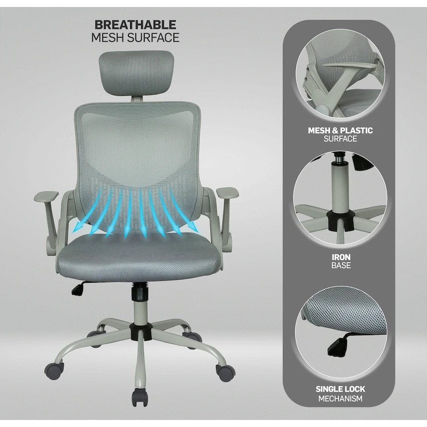 Everfurn Silicon Ergo Office Chair with Adjustable Arms and Head Rest – Grey