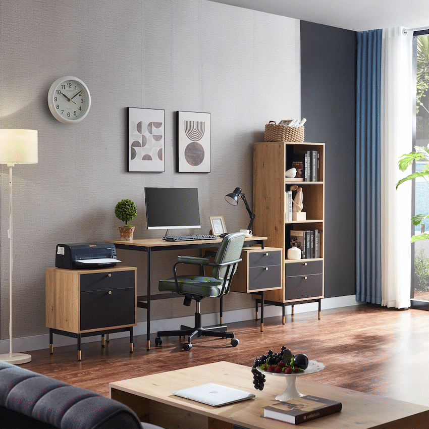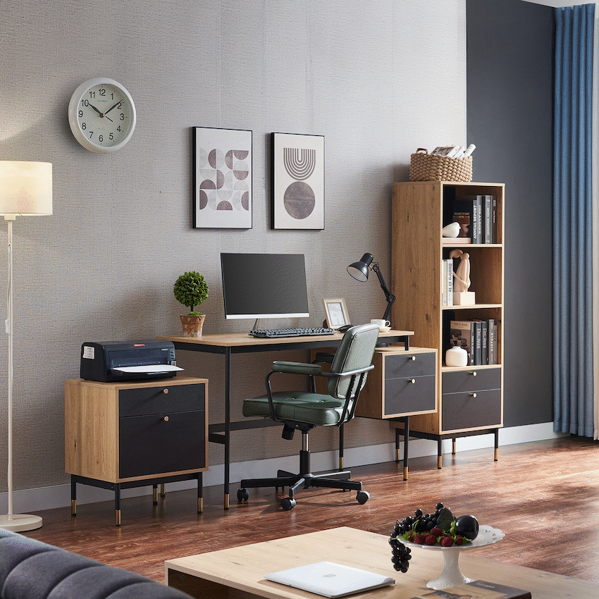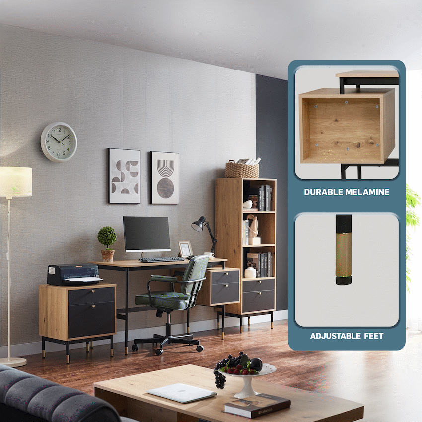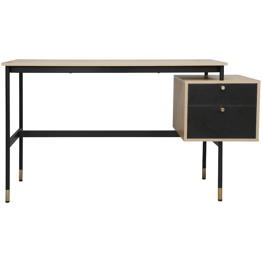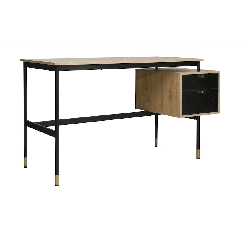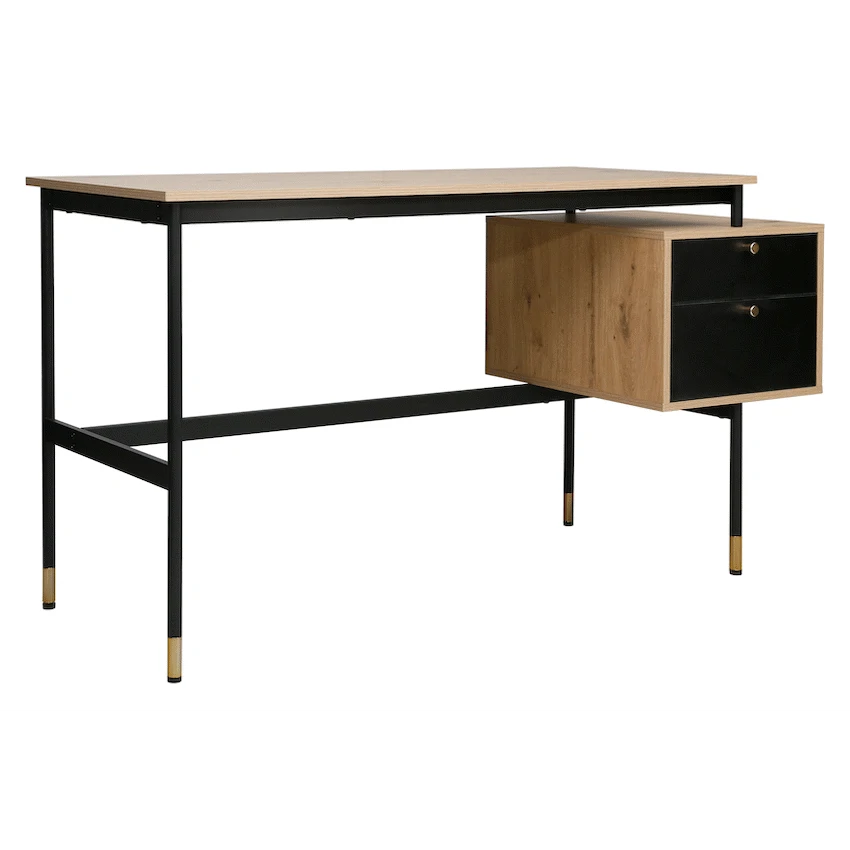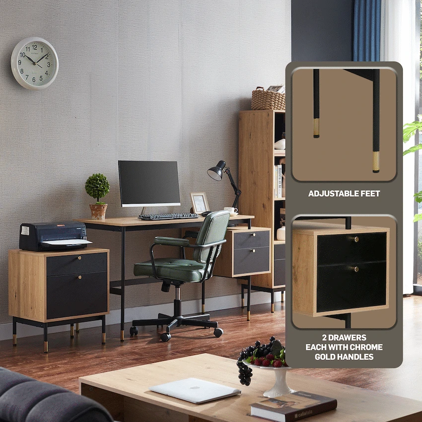 Create a refined and efficient workspace with the Everfurn Summit Office Desk with Two Drawers, designed to deliver both modern style and everyday practicality. Finished in a sleek black tone, this modern office desk is ideal for home offices, studies, or professional workspaces that value clean design and smart storage.The desk features two spacious drawers that provide organised storage for documents, stationery, and personal items, helping keep your work surface clear and focused. Its floating drawer design increases legroom beneath the desk, offering enhanced comfort during long work sessions. The generous desktop provides ample space for laptops, monitors, and daily essentials, making it a reliable computer desk with storage drawers.Built from durable engineered wood with a protective melamine finish, the surface is water- and scratch-resistant for long-lasting everyday use. The powder-coated steel frame and legs, crafted from robust 1mm steel, deliver excellent stability and resistance to rust and wear. Adjustable feet allow easy levelling on uneven floors while helping to protect floor surfaces. Finished with PVC edging, the desk is designed to withstand daily knocks and maintain its polished appearance.Feature HighlightsTwo Integrated Drawers – Keeps documents and office essentials neatly organisedFloating Drawer Design – Provides increased legroom for added comfortDurable Melamine Surface – Water- and scratch-resistant for everyday usePowder-Coated Steel Frame – Rust- and scratch-resistant for lasting stabilityAdjustable Feet – Ensures a level, stable desk on uneven surfacesPVC Edge Protection – Helps guard against impact and wearHigh Load Capacity – Supports up to 40kgTechnical SpecificationsMaterial: Engineered Wood (PB Board)Finish: Melamine Lamination with PVC EdgingFrame: Powder-Coated Steel (1mm)Board Thickness: 15mm (Top and Sides)Colour: BlackMaximum Load Capacity: 40kgDimensions: 1375mm x 540mm x 760mmWeight: 26kgWarranty: 1 YearWhat’s in the Box1 x Everfurn Summit Desk1 x Instruction ManualUpgrade your home office with a modern black desk that combines comfort, durability, and smart storage-designed to support productivity every day.