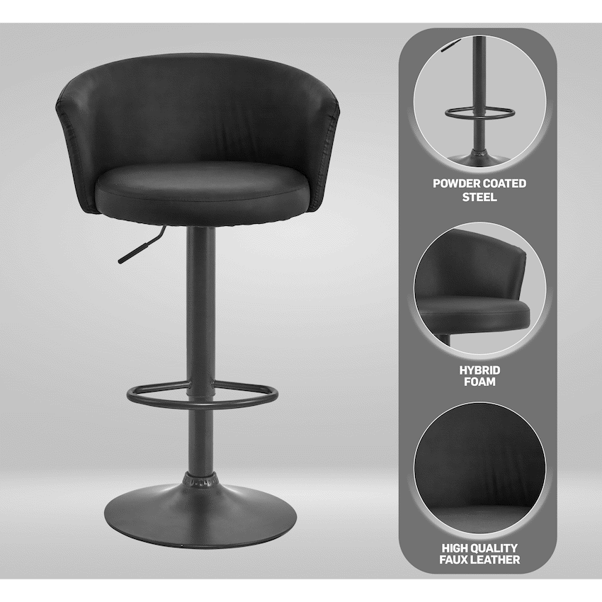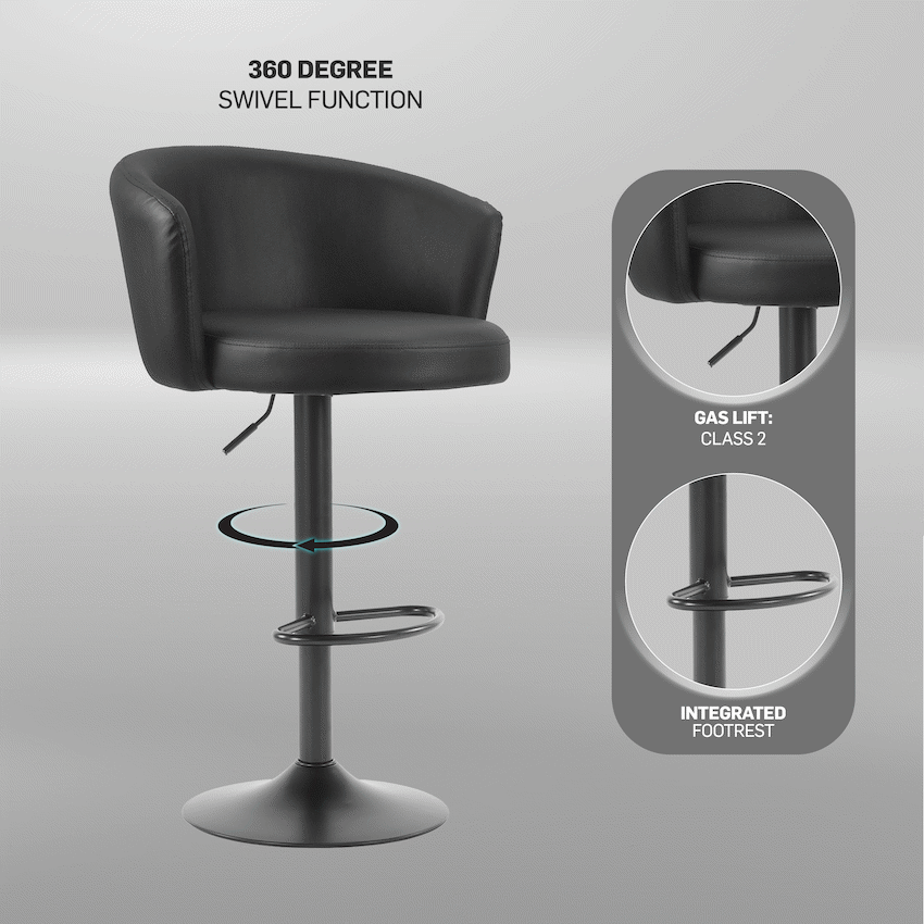 Everfurn Titan Barstool Black – 2 Pack, Height Adjustable with Footrest