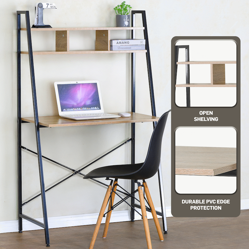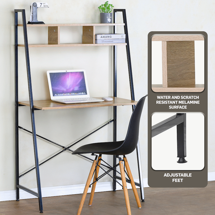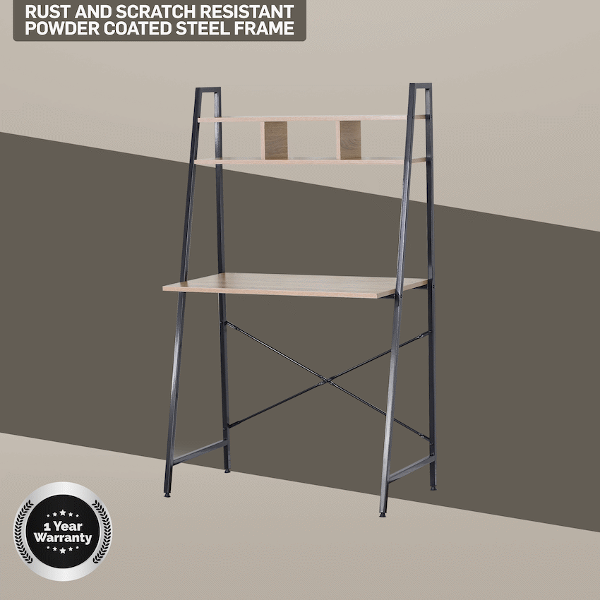 Everfurn Vesa Office Desk, Durable Melamine Lamination, Powder Coated Steel – Oak & Black