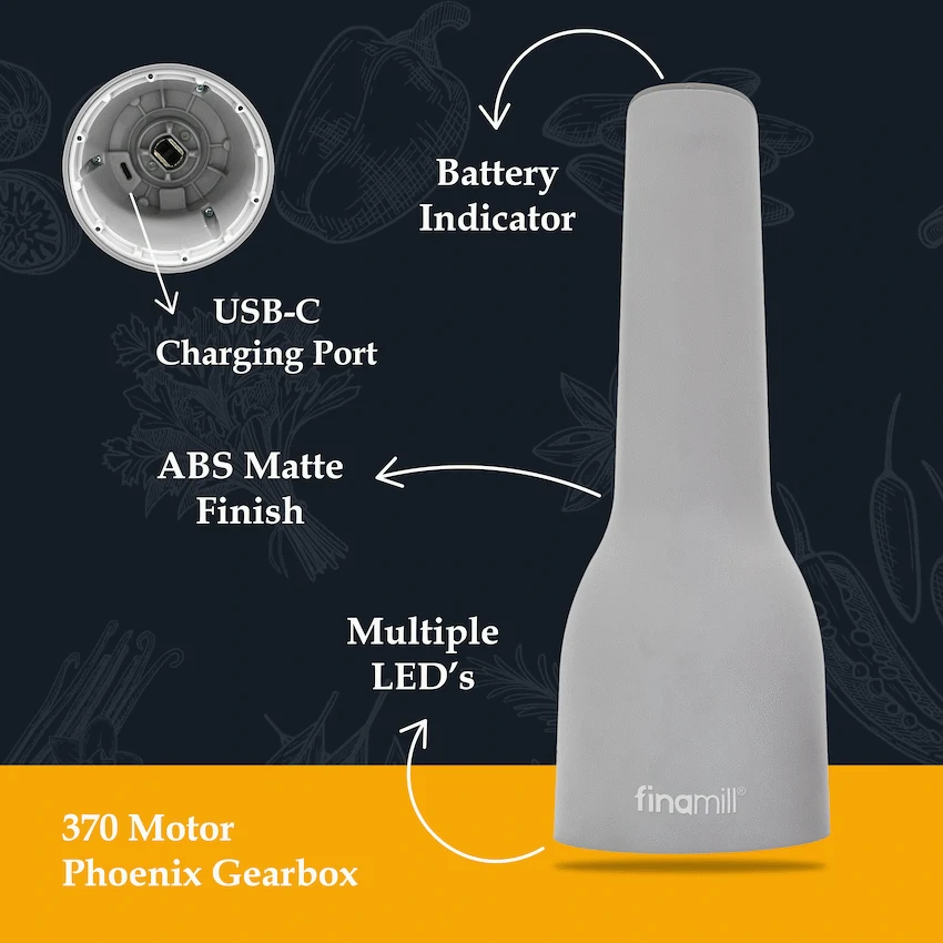 Designed for ease and efficiency, the FINAMILL Rechargeable Grinder features a stylish ABS matte finish and bright LED lights, providing perfect visibility with every use. Compatible with all Finapods, it offers cordless convenience and precise grinding wherever you go.ABS Matte Finish for a modern, durable lookBuilt-in LED Lights to illuminate your grindWorks with All Finapods for versatile flavor optionsRechargeable Battery for portable power