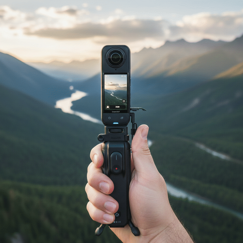Never miss a moment with the Insta360 FOMO Power Handle, designed for the X5 and X4 cameras. Featuring a built-in 6100mAh battery, it provides over 6 hours of continuous 5.7K30fps recording in Pre-Recording Mode, ensuring you capture every spontaneous 360deg shot. The handle includes a detachable Bluetooth Mini Remote with up to 33ft (10m) range for convenient camera control from a distance. Its compact, foldable design makes it easy to carry, while the included lens cap protects your camera during transport.