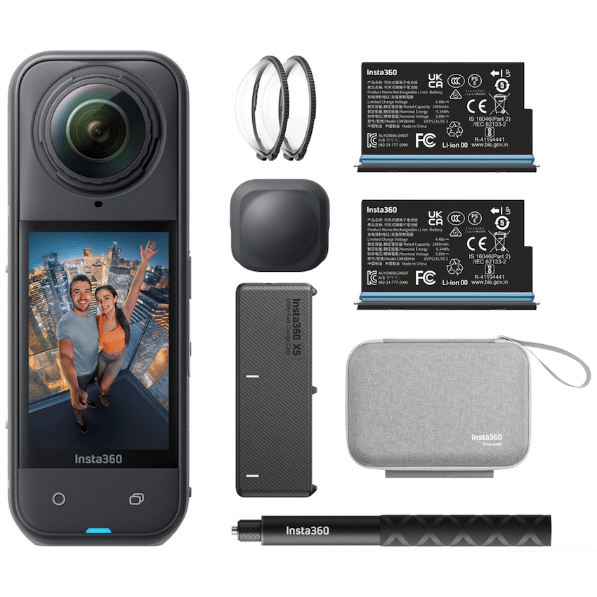 The Insta360 X5 Essential Bundle is the perfect all-in-one 360deg action camera kit for creators seeking cinematic 8K video and versatile accessories. It includes the flagship Insta360 X5 camera, two rechargeable 2400mAh batteries, a utility fast charge case, lens guards, a lens cap, a durable carry case, and a 114cm Invisible Selfie Stick for dynamic shots.Capture stunning HDR 8K30 360deg video and 4K60 first-person POV with PureVideo technology powered by advanced AI for superior clarity and low-light performance. The rugged, waterproof design (up to 15m) and replaceable lenses make it perfect for any adventure. Enjoy FlowState stabilization for ultra-smooth footage and 360deg horizon lock to keep your shots steady.This bundle gives you extended shooting time with extra batteries and fast charging, plus effortless shooting with AI-driven features like time-lapse, bullet time slow motion, and voice/gesture control. Share and edit your content easily using the Insta360 app and cloud backup.Ideal for action sports, travel, and professional 360deg content creation, the Insta360 X5 Essential Bundle equips you with everything needed to elevate your storytelling in any environment.This description emphasizes key terms like “8K 360deg video,” “action camera kit,” “waterproof,” “stabilization,” and “selfie stick” for strong search optimization.