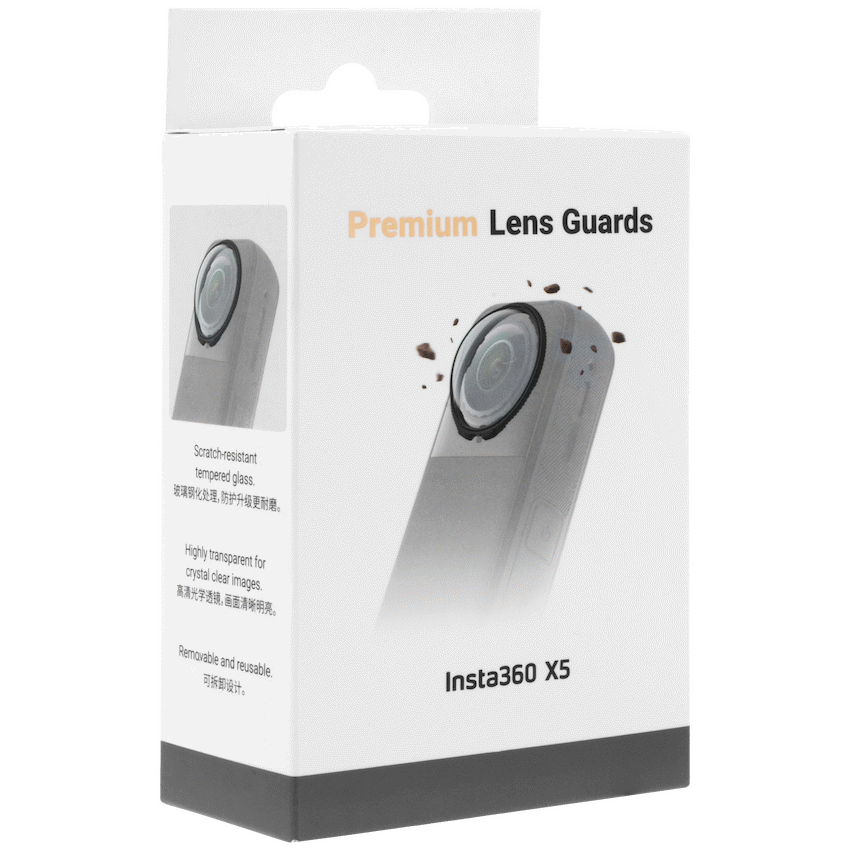 Protect your Insta360 X5 lenses with these Premium Lens Guards, crafted from ultra-tough, multi-coated tempered glass for superior scratch and impact resistance. Designed for seamless 360deg shooting, they maintain crystal-clear image quality and color accuracy. The secure twist-lock mechanism ensures quick, tool-free installation and removal, while the guards automatically activate Lens Guard Mode on your X5 for instant shooting. Ideal for intense activities, these guards provide high-strength protection without compromising your footage.