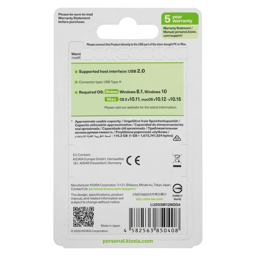 Kioxia U203W- 128GB USB 2.0 Yamabiko Slider Typ