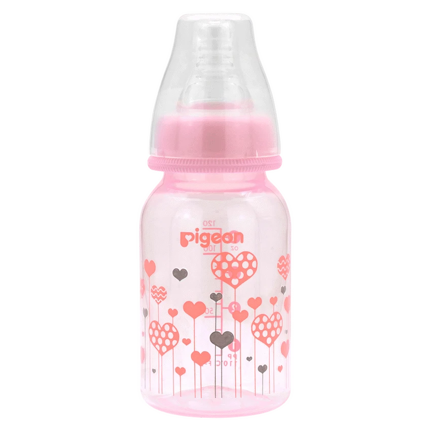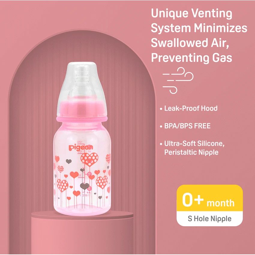 The Pigeon FlexibleTM PP Bottle is a 120ml is a great newborn baby bottle option, slim neck bottle with a cute blue balloon design. Use with FlexibleTM Peristaltic Teats is made from light weight plastic. Best suited for low to regular use. When baby is not breast-fed. Baby is very small and if baby sometimes fusses at the teat. Comes with a Flexible Small (S) hole Nipple which has a slim neck and is made with double thick silicone that is soft and makes latching easy. Along with a venting system that helps minimize swallowed air and colic in babies. This bottle is BPA free.