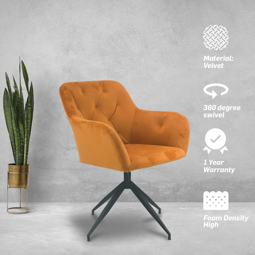 Plush Swivel Casual Chair – Burnt Orange – Velvet Fabric