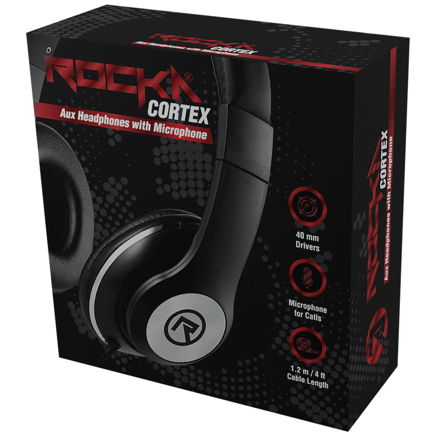 Rocka Cortex series Aux Headphones – Black