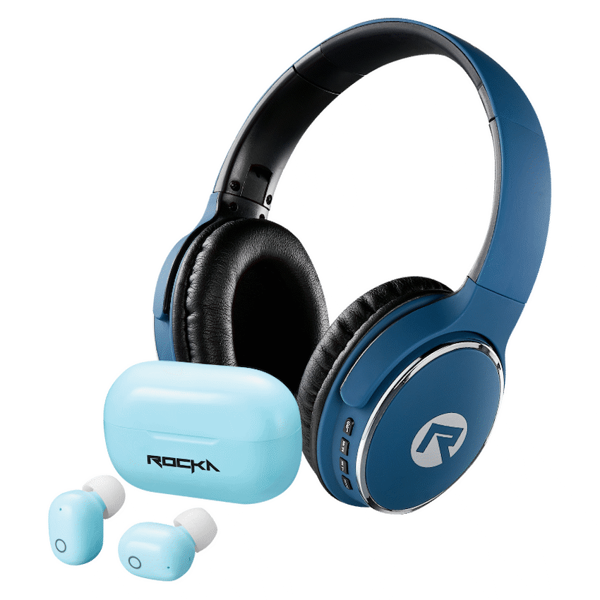 Rocka Epic 2.0 Bluetooth Headphone and TWS Earphone Combo – Blue