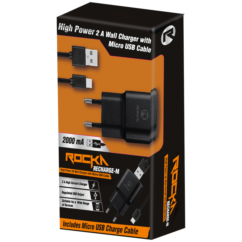 Rocka Recharge-M series 2A Wall Charger with Micro USB cable – black