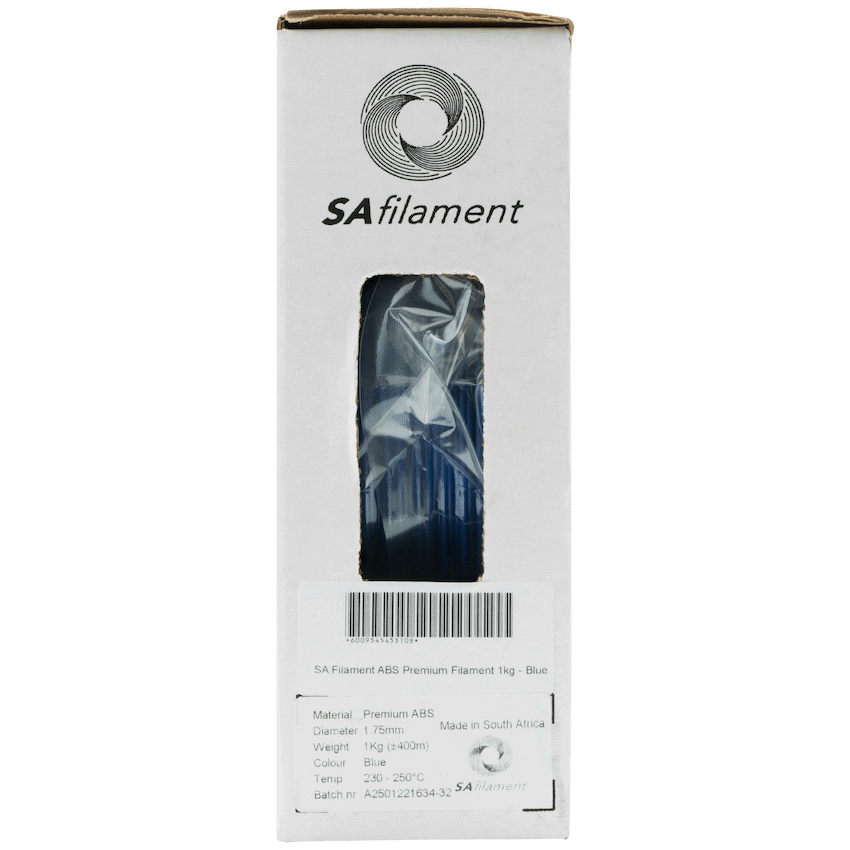 Upgrade your 3D prints with SA Filament Premium ABS – a high-performance, locally engineered filament designed for strength, heat resistance, and consistency. Whether you’re creating functional prototypes, mechanical parts, or aesthetic models, this ABS delivers professional results print after print.Manufactured in South Africa using advanced automation and quality control, each 1.75 mm spool is vacuum-sealed to protect against moisture and preserve quality. With tight diameter tolerances and reliable extrusion, this ABS filament 1 kg roll ensures smooth, accurate printing and dependable performance.Choose SA Filament for a durable, cost-effective solution that puts 3D printing excellence within reach for South African hobbyists and professionals alike.
