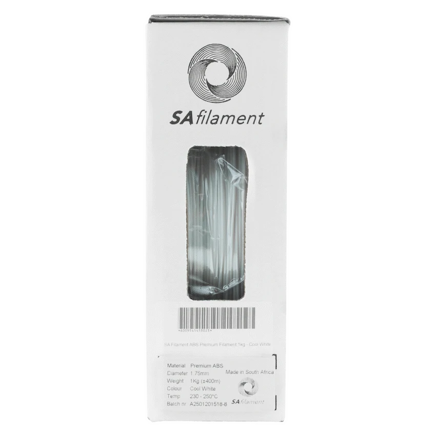 Take your 3D printing to the next level with SA Filament ABS Premium, engineered for strength, reliability, and professional-quality results. Ideal for functional parts, prototypes, enclosures, and tools, ABS is known for its impact resistance, thermal durability, and long-lasting toughness.Proudly manufactured in South Africa, this filament is produced under strict quality control with precision 1.75 mm diameter tolerances to ensure smooth feeding and clog-free extrusion. Each spool is vacuum-sealed to protect against moisture, keeping your prints consistent from start to finish.Whether you’re a hobbyist or a professional, SA Filament ABS Premium is the smart choice for projects that demand extra durability and heat resistance, without compromising on print quality.