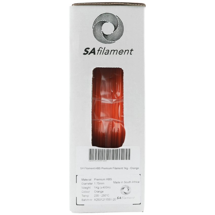 Upgrade your 3D prints with SA Filament Premium ABS – a high-performance, locally engineered filament designed for strength, heat resistance, and consistency. Whether you’re creating functional prototypes, mechanical parts, or aesthetic models, this ABS delivers professional results print after print.Manufactured in South Africa using advanced automation and quality control, each 1.75 mm spool is vacuum-sealed to protect against moisture and preserve quality. With tight diameter tolerances and reliable extrusion, this ABS filament 1 kg roll ensures smooth, accurate printing and dependable performance.Choose SA Filament for a durable, cost-effective solution that puts 3D printing excellence within reach for South African hobbyists and professionals alike.