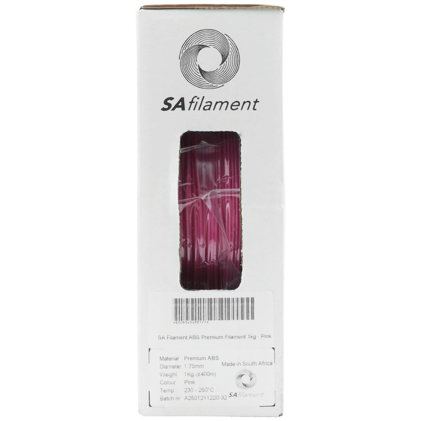 Upgrade your 3D prints with SA Filament Premium ABS – a high-performance, locally engineered filament designed for strength, heat resistance, and consistency. Whether you’re creating functional prototypes, mechanical parts, or aesthetic models, this ABS delivers professional results print after print.Manufactured in South Africa using advanced automation and quality control, each 1.75 mm spool is vacuum-sealed to protect against moisture and preserve quality. With tight diameter tolerances and reliable extrusion, this ABS filament 1 kg roll ensures smooth, accurate printing and dependable performance.Choose SA Filament for a durable, cost-effective solution that puts 3D printing excellence within reach for South African hobbyists and professionals alike.