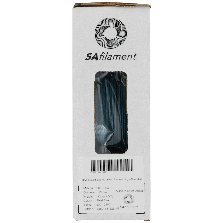 Take your 3D printing to the next level with SA Filament PLA Plus (PLA+), a premium upgrade to standard PLA. Engineered for greater strength, impact resistance, and higher heat deflection, this filament is perfect for functional parts, durable prototypes, and long-lasting prints.Despite its enhanced toughness, PLA Plus retains the user-friendly characteristics of PLA, making it easy to print at standard settings with minimal warping or clogging. Each spool is precision-manufactured to 1.75 mm +/- 0.05 mm for consistent extrusion and smooth layer adhesion.Proudly produced in South Africa, every roll of PLA+ filament is vacuum-sealed for moisture protection, ensuring reliability and top-quality prints straight out of the box