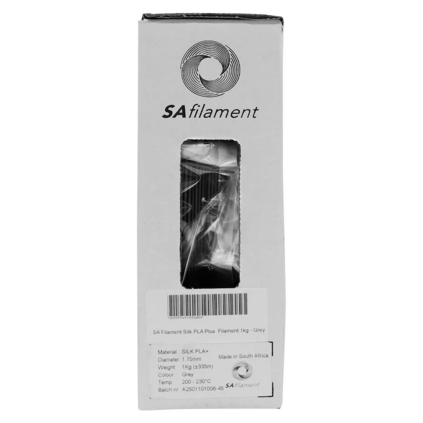 Elevate your 3D projects with the SA Filament Silk PLA Plus Gloss-a premium filament that combines the luxurious silk sheen of silk PLA with the robustness of PLA+. Delivering a breathtaking, high-gloss finish and enhanced mechanical properties, it’s perfect for decorative pieces, prototypes, show models, and artistic creations.This filament maintains all the ease-of-printing of standard PLA with improved impact resistance, heat deflection, and adhesion-all while printing at regular PLA temperatures and speeds. Crafted locally in South Africa with precision-engineered tolerance (+/-0.05 mm), it ensures smooth, reliable extrusion. Each spool is vacuum-sealed and boxed, keeping your filament fresh and moisture-free.