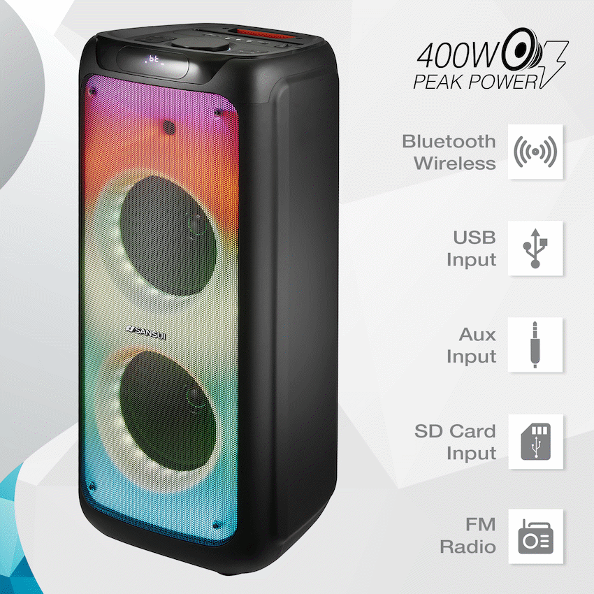 Sansui SNP100 Bluetooth True Wireless Dual 10″ Party Speaker – Black