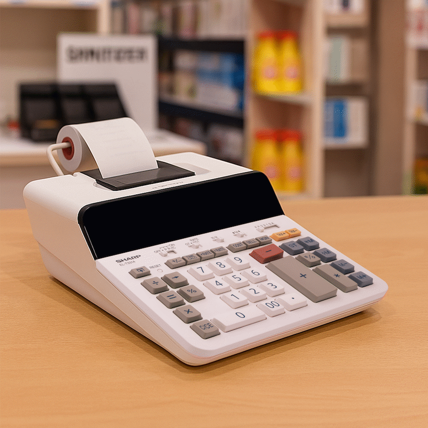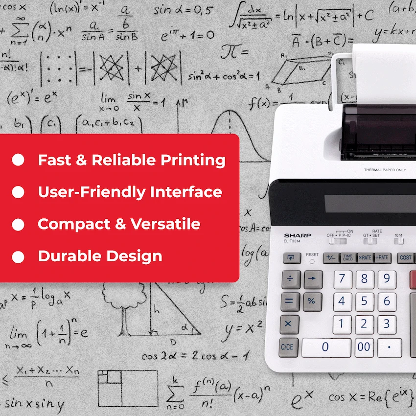 The Sharp EL-T3314 Thermal Printing Calculator is a powerful and efficient office companion, designed to handle demanding calculation tasks with ease. With a printing speed of up to 8 lines per second, it delivers fast and reliable output, making it ideal for busy work environments. Thanks to its thermal printing technology, there is no need to replace ink rollers, reducing maintenance costs and downtime. The display allows you to switch between 14 digits and 10 larger digits, ensuring clear visibility depending on your preference. It is equipped with convenient business functions such as +TAX/-TAX calculation, cost/sell/margin keys, and a rate converter for accurate financial tasks. Additional features like grand total, resume function, and AC power operation make it a dependable choice for everyday office use. Combining speed, clarity, and advanced features, the Sharp EL-T3314 ensures a smooth and productive work experience.